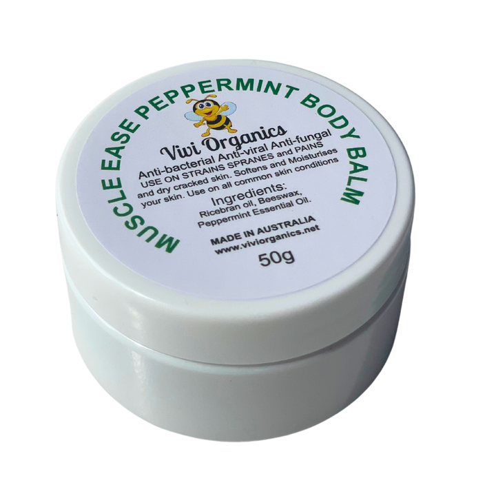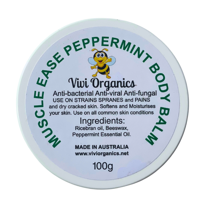 Our Muscle Ease Balm is a specially formulated blend containing Peppermint essential oil, which is known for its natural anti-inflammatory properties and cooling effect.